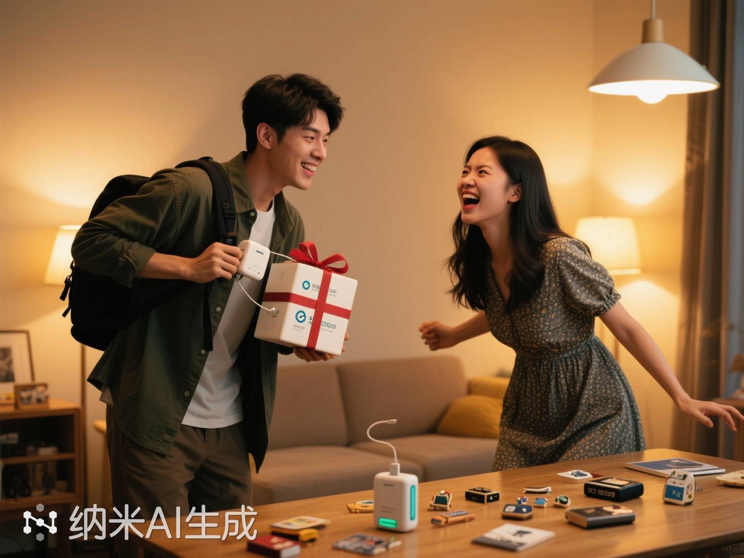 我抱着胳膊站在玄关,看他单手拖寸行李箱从电梯口晃出来。深蓝色西装皱巴巴的,头发像被台风席卷过的草丛,偏偏嘴角还挂着自以为迷人的微笑——这是我那位戏精男友出差一周后的“凯旋归来”造型。 “宝贝想我没?”他把行李箱往旁边一踢,张开双臂就要上演偶像剧式拥抱。我侧身躲开,眼尖地瞥见他西装内袋鼓鼓囊囊,“少来这套,礼物呢?”上周视频时他神秘兮兮说要带“足以载入史册的惊喜”,害我偷偷列了三天愿望清单。 他突然捂住口袋后退半步,眉头紧锁作痛苦状:“为了这个礼物,我在机场经历了九九八十一难!”看我翻了个白眼,又立刻切换成深情模式,缓缓掏出一个印着“XX充电”logo的蓝色物体。空气凝固三秒后,我确认自己没看错——那是个共享充电宝,机身还粘着半片风干的口香糖。 “怎么样?感动不?”他期待地搓手,“这可是我从机场借的限量款!当时手机没电关机,全靠它撑到现在,简直是现代版的‘沙漠甘泉’!”我抓起抱枕就砸过去,他灵活躲开,还委屈地辩解:“你想想啊,以后出门再也不用找充电桩,我就是你的人形共享充电宝基站!” 笑到飙泪时,他突然从行李箱里掏出个丝绒盒子。打开一看,是条细巧的银项链,吊坠形状居然是个迷你充电宝。“其实这个才是正经礼物,”他挠挠头,“那个共享充电宝是想逗你开心啦。”我摸着冰凉的吊坠,突然想起上个月抱怨手机总没电,他当时没吭声,原来记在了心里。 现在那枚共享充电宝被我摆在客厅当摆件,每次朋友来都要笑半天。但说真的,看着它就想起那天他手忙脚乱解释的样子,突然觉得这个“沙雕礼物”比任何奢侈品都让人心里发暖。毕竟能把共享充电宝玩出浪漫花样的,大概只有我家这位戏精男友了。